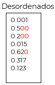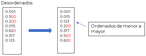 Al ver los números enlistados es más sencillo observar cómo quedan alineados los números decimales. Por ejemplo, en el suborden de los décimos: 0,1,2,3,5,6