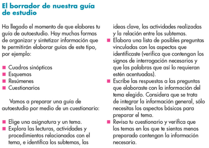 2. Te invitamos a leer tu libro de Español, Bloque I, página 14 y 15, el tema “Elaborar guías de autoestudio para la resolución de exámenes”.
