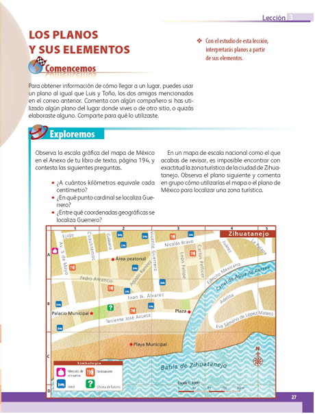 Por último, observa nuevamente el plano de Zihuatanejo de la página 27, responde las siguientes preguntas: