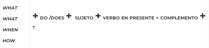 Primero ¿Qué? ¿Cómo decimos “Qué” en inglés? Así es “What” – Escribimos What, luego siguiendo nuestra receta escribimos Do o Does.