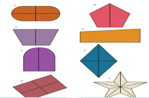 Recorta las figuras de las páginas 175 y 177 después dóblalas de manera que las dos partes coincidan, marca con un color el doblez o los dobleces que te permitan lograr esto.