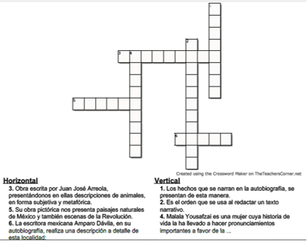 Lee las preguntas y ve aportando más información para ir recordando el tema. Conforme tengas las respuestas, el crucigrama se debe ir llenando.