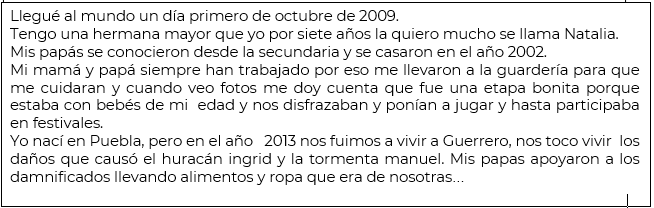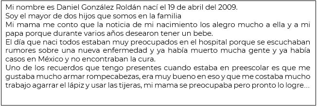 Si no tienes fotos, comenta con el adulto que te acompañe o trata de hacer un ejercicio de mucha memoria para recordar lo que puedas. Anota las preguntas con sus respectivas respuestas en tu cuaderno.