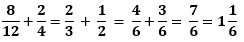 El 6 cabe 1 vez en el 7, entonces tenemos 1 entero o unidad y me sobra 1 sexta parte, por lo que la fracción queda así: