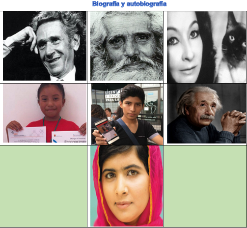 Busca biografías de personajes que admires o que sean de tu interés; revisa si hay algún texto de este tipo en tu casa, de ser posible busca en internet y recuerda que al regresar a tu escuela podrás encontrar algunos en la biblioteca escolar.