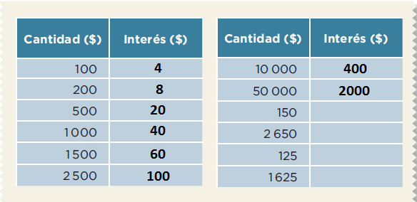 Calcula el interés mensual a pagar por las siguientes cantidades.
