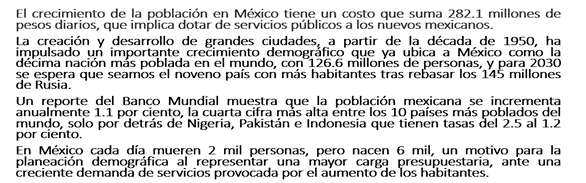 Un crecimiento considerable de la población, donde rebase la producción de alimentos o el PIB, traerá efectos negativos y si por el contrario, disminuye, faltará gente que realice actividades productivas o población adulta que requiera, entre otras cosas, más servicios de salud.