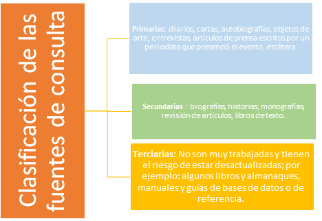 Este es otro cuadro sinóptico pero ahora con una clasificación de las fuentes de consulta: