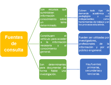 Hablaremos un poco más sobre ese tema de las fuentes de consulta con el siguiente cuadro sinóptico.