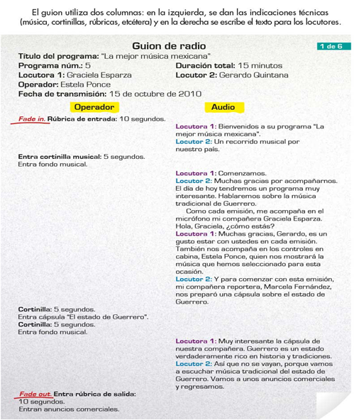 - Guion radiofónico.