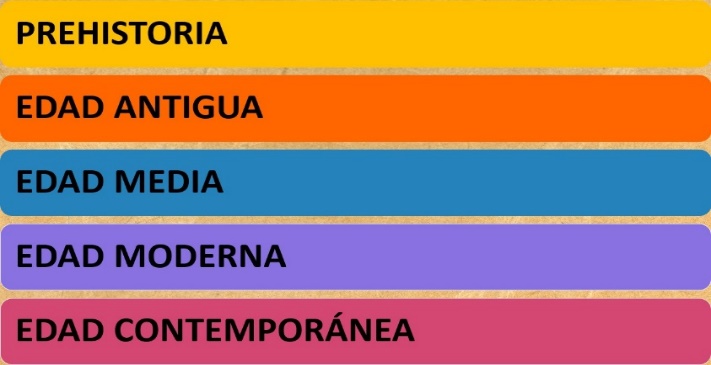 Luego sigue la Historia, y el inicio de la Edad Antigua, marcadas por el surgimiento de la escritura.