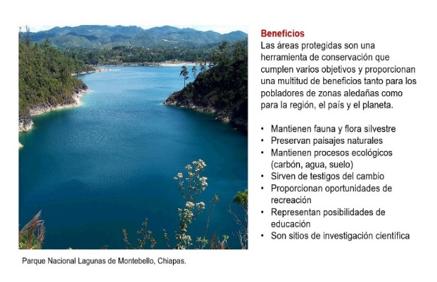 Las áreas naturales no solo tienen la intención de cuidar a las especies, tambien cumplen muchos propósitos y de ellas se obtienen grandes beneficios. En la siguiente imagen podemos ver algunos de ellos.