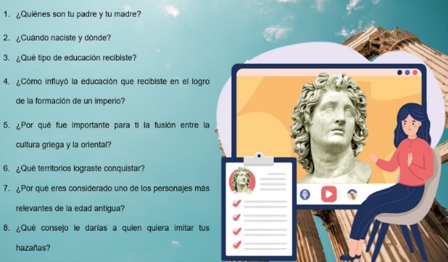 Para desarrollar la entrevista, puedes apoyarte en la clase “La Grecia Helenística” o consultar alguna fuente de información confiable o tu libro de texto.