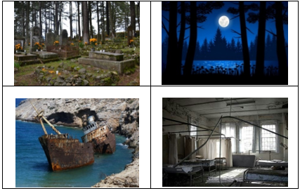 Mira las siguientes imágenes y escribe en tu cuaderno un adjetivo que genere suspenso o miedo.