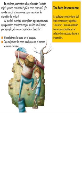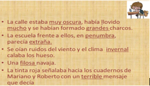 Ahora, observa unos ejemplos tomados del cuento “Tinta roja”.