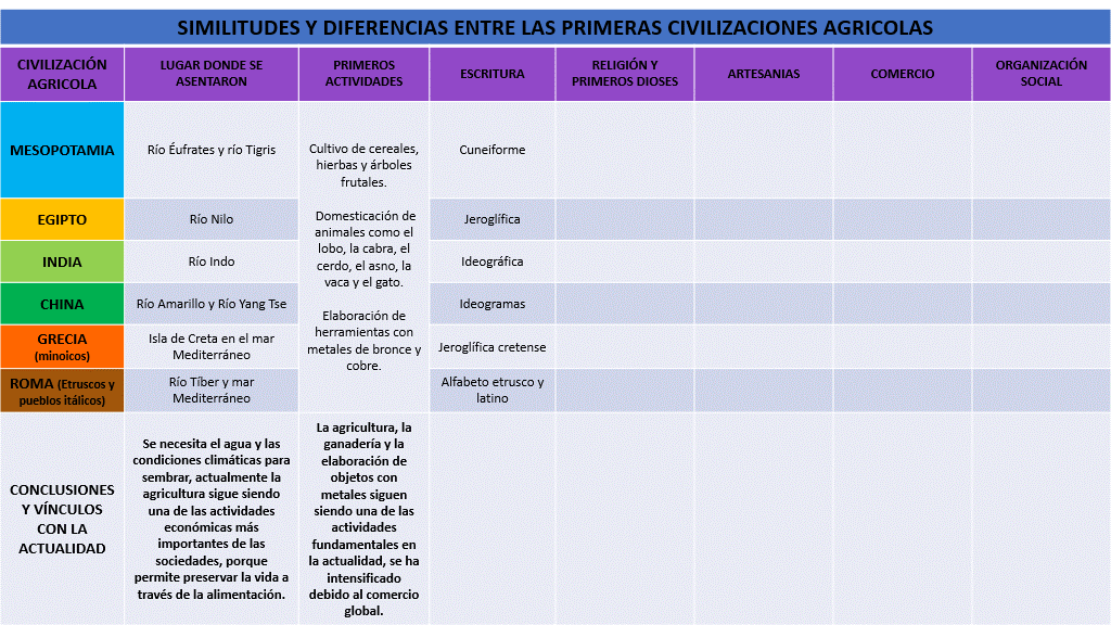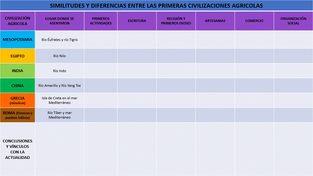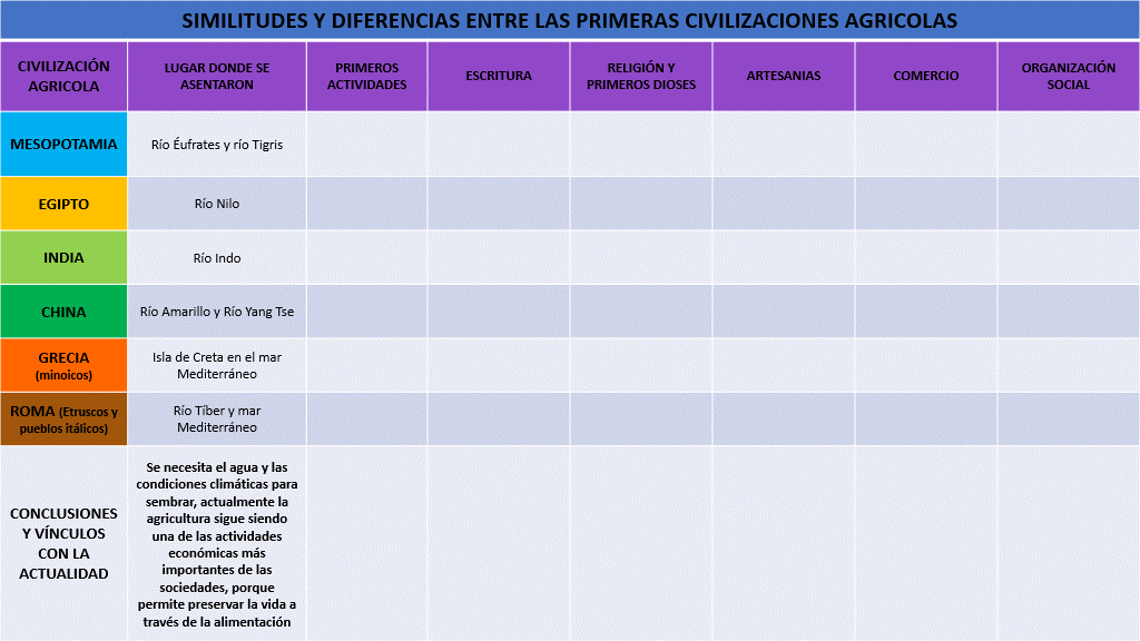 Ahora, presta atención a las similitudes de estas civilizaciones. Registremos: