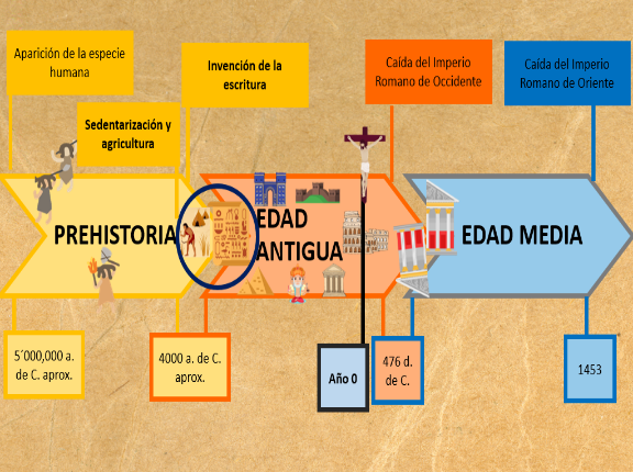 Entonces, cuando decimos, por ejemplo, que el inicio de la Prehistoria ocurrió hace 3,500,000 de años antes de Cristo, nos tenemos que ubicar del lado izquierdo del 0 y los años irán avanzando de mayor a menor.