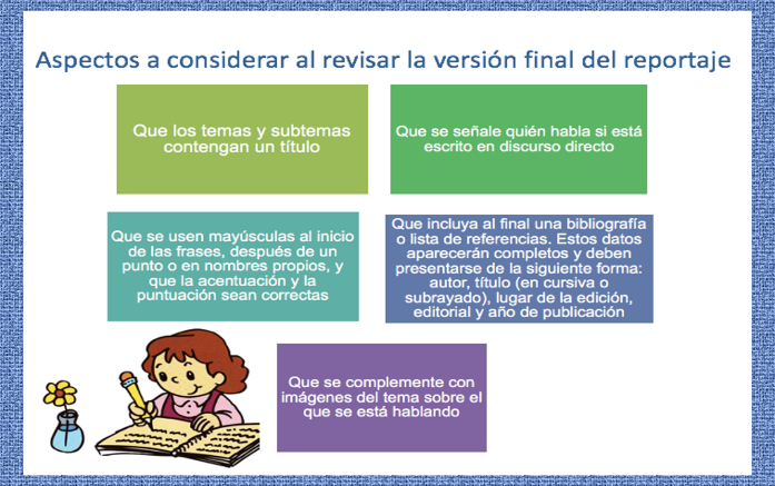 Para revisarlo puedes compartirlo con alguien más y revisa si es comprensible tu redacción, si la ortografía es correcta y si responde a las preguntas que guiaron la elaboración de tu reportaje.