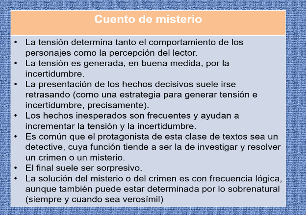 En la siguiente lámina observa las principales características de los cuentos de misterio: