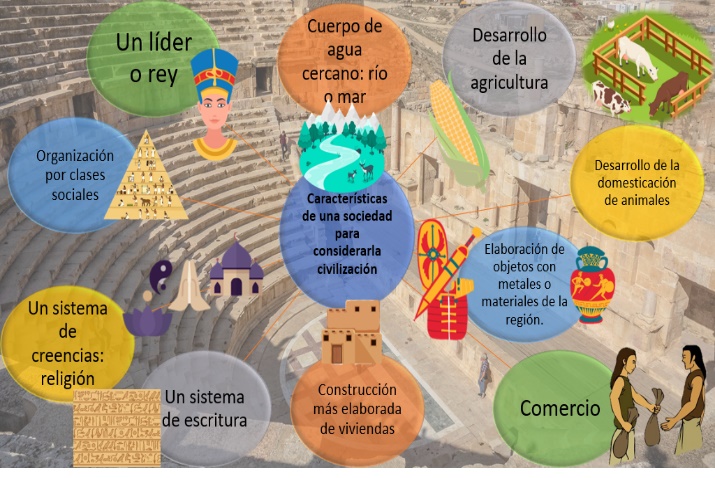 Cerremos este análisis histórico retomando un mapa conceptual elaborado en sesiones anteriores: “Características de una sociedad para considerarla civilización”.
