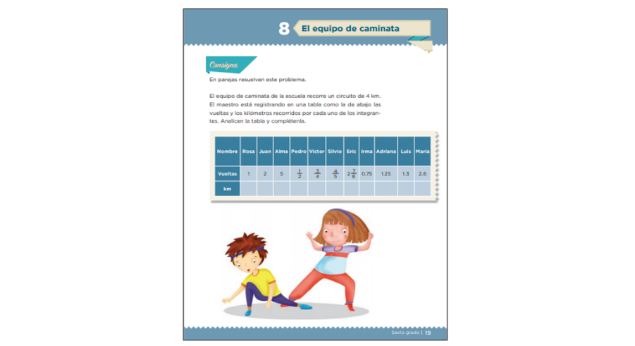 En el desafío que repasamos en la sesión anterior, “El equipo de caminata”, debíamos multiplicar fracciones o decimales por un solo número entero para obtener la equivalencia entre la fracción del recorrido que había avanzado cada quien y los kilómetros que había recorrido.