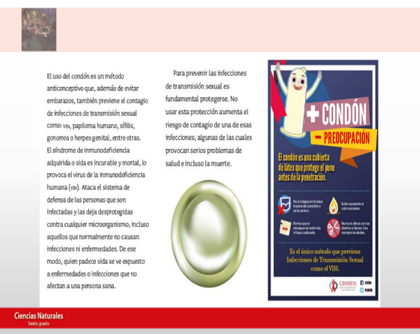 Aprendizaje esperado: Argumenta en favor de la detección oportuna de cáncer de mama y las conductas sexuales responsables que inciden en su salud: prevención de embarazos e infecciones de transmisión sexual (ITS), como el virus de inmunodeficiencia humana (VIH).