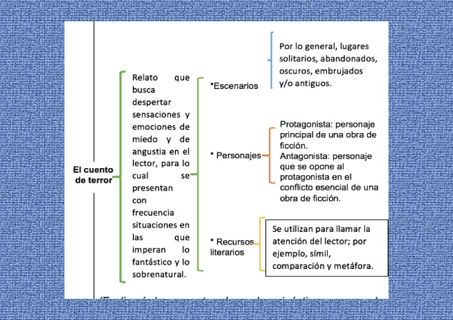 Como ves, los escenarios y personajes de los cuentos de terror poseen también ciertas particularidades.