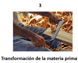 Como ya está la madera, entonces sigue la elaboración. El número 3 le corresponde a la persona que elabora los productos: “el carpintero”.