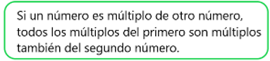 Entonces puedes imaginar que cuando un número es múltiplo de otro número, los múltiplos del primero también son múltiplos del segundo; como en el 6 y el 3, donde todos los múltiplos de 6 también son múltiplos de 3, porque 6 es múltiplo de 3.