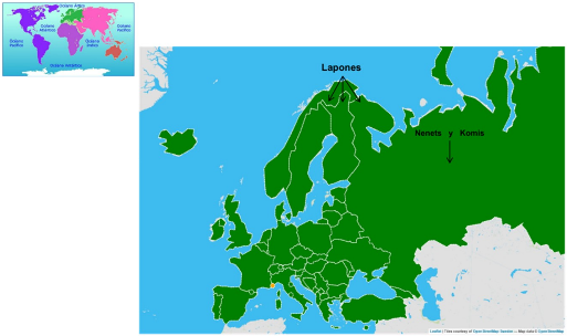 Mientras que en Europa sobresale el pueblo Lapón, que vive al norte de Noruega, Suecia y Finlandia, así como los Nenets y Komis, que habitan en la región de los montes Urales, en la Federación Rusa. Es pertinente aclarar que a muchos pueblos indígenas se les da un nombre de acuerdo con la región en que viven, tal es el caso de los Lapones que viven en la región de Laponia, pero estas comunidades se reconocen a sí mismas como Sámis o pueblo Sámit.
