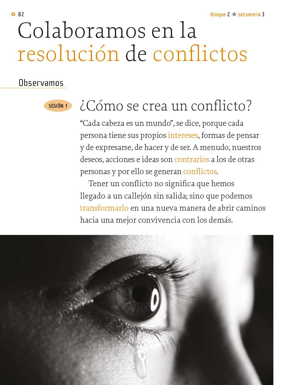 Aprendiste que los conflictos son desacuerdos que tenemos con otra persona o personas, ya que no todos hacemos, pensamos o sentimos igual.