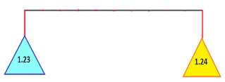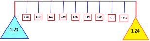 Aquí se tiene el 1.23 y el 1.24 y al ampliar el espacio entre ellos, encontramos más números decimales.
