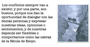 Para continuar revisa una fábula, que te ayudará a ampliar tu panorama al respecto. Es una fábula de Esopo, llamada “Las dos cabras”.
