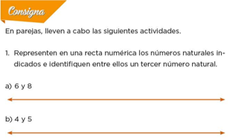 - Representa en una recta numérica los números naturales indicados e identifica entre ellos un tercer número natural.