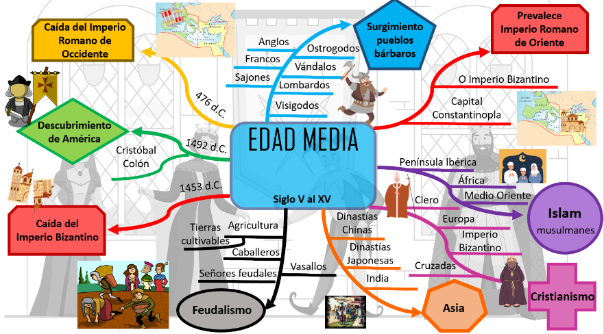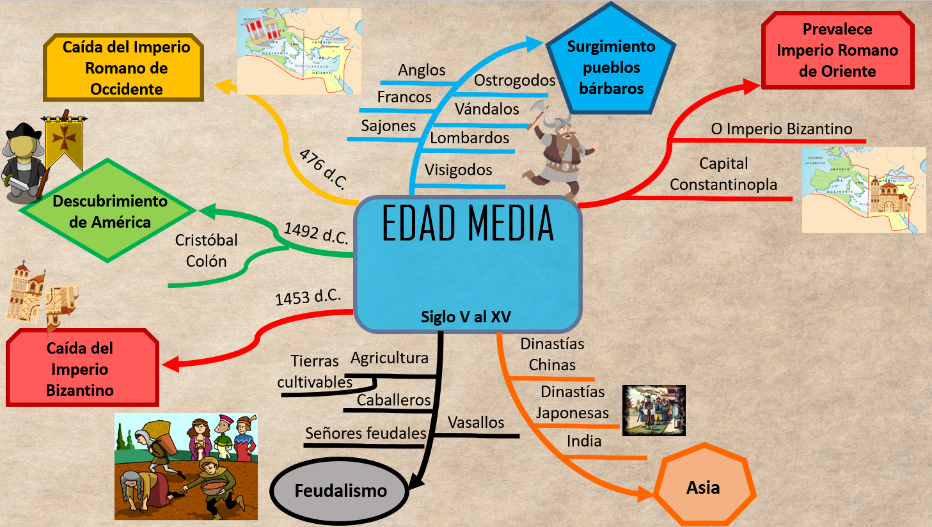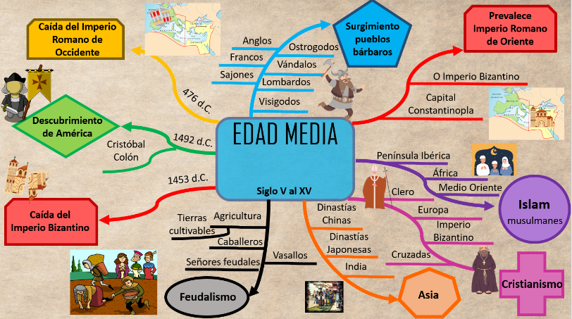 Esta duración de la Edad Media anótala en el centro de tu mapa conceptual.