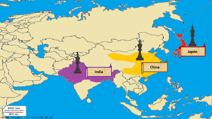 De hecho, en tu mapa falta que ilumines los territorios de la India, China y Japón que se mencionaron en la historia del ajedrez. Y es que, si recuerdas, la civilización China e India se empezaron a desarrollar en la Edad Antigua y lógicamente se continuaron desarrollando en la Edad Media europea, por lo tanto, estas civilizaciones también alcanzaron importantes logros políticos, sociales, comerciales, tecnológicos y científicos que en futuras sesiones vas a analizar con detalle.