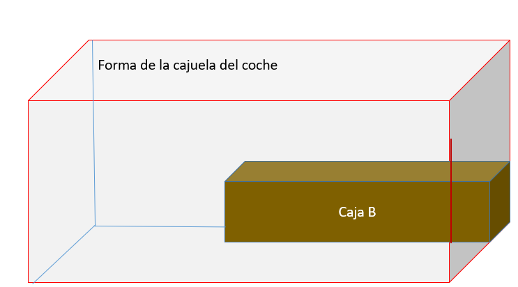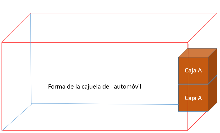 Cuántas cajas de tamaño C se necesitan para ocupar el mismo espacio que el de la cajuela del automóvil. ¿Se necesitan más de cinco?