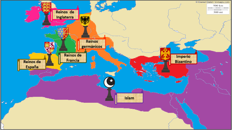 En el siguiente mapa observa los reinos, están representados con fichas de ajedrez.