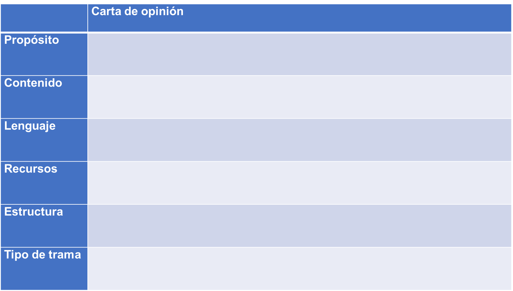 Reflexiona sobre las cartas de opinión que has leído en la sesión mientras vas llenando la tabla.