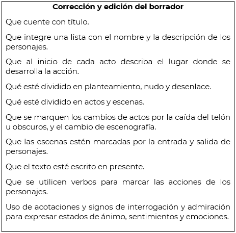 Aprendizaje esperado: Redacta el borrador de una obra de teatro. Usa signos de interrogación y exclamación, así como acotaciones para mostrar la entonación en la dramatización. Revisa el borrador de una obra de teatro.