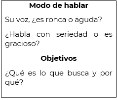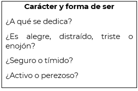 Éstas tienen que ver con el carácter y forma de ser de los personajes, ¿A qué se dedica? ¿Es alegre, distraído, triste o enojón? ¿Seguro o tímido? ¿Activo o perezoso?