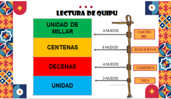 Primero vamos a ubicarnos en un sistema de numeración posicional, similar al que ocupamos en la actualidad, sólo que, en el caso del quipu, en vez de organizar los valores en horizontal, los incas los organizaban en vertical.