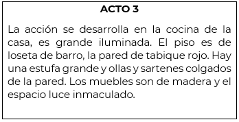 Primero estaría dividido en dos escenas porque cambian los personajes, dejaría un mismo ambiente, la cocina.