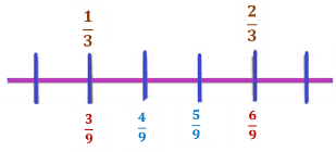 Primero, marca en la recta el punto 1/3 luego 2/3 y finalmente el punto 4/9