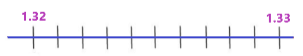 Se ubican primero los puntos 1.32 y 1.33 luego hay que marcar nuevamente el punto en medio de ellos, y para saber qué número representaba había que dividir ahora los centésimos en diez partes iguales y convertirlos a milésimos, así que se encontraron estos números: 1.321, 1.322, 1.323, 1.324, y 1.325 y se identifica que ése está a la mitad de entre los dos números que se dijeron.