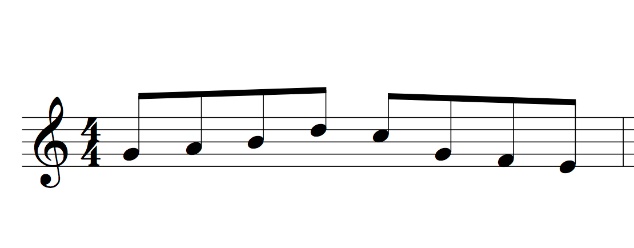 Para escribirlas primero no debes olvidar escribir el compás de cuatro cuartos, luego escribir las corcheas en grupos de dos, al final la barra de compás, también pueden escribirse separadas una por una.