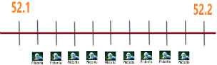 Luis y Ana salen con su perra “Pildorita” a correr todas las mañanas a una pista que hay cercana a su casa. Ana ha recorrido 52.2 m de la pista y Luis ya recorrió 52.1 m de la pista y su perro va entre ellos dos. Esta recta representa la ubicación de Ana y Luis. Señala algún punto donde pueda encontrarse la perra y la distancia que representa ese punto.