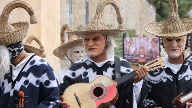 En estos días los grupos de cho nijmo o huehuentones, que son grupos de personas que se disfrazan de algún personaje que ya dejó de existir, van de casa en casa sin excepción alguna. El visitado o la familia visitada tiene que recibir a los cho nijmo con algún presente.