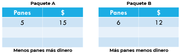 El paquete B contiene 6 panes y cuesta $12. ¿Qué paquete conviene comprar?