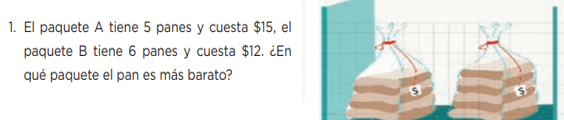 El paquete A tiene 5 panes y cuesta $15 el paquete B tiene 6 panes y cuesta $12 ¿En qué paquete el pan es más barato?